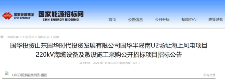 招標(biāo)范圍為國家能源集團(tuán)國華半島南U2海上風(fēng)電項(xiàng)目2回(兩期各1回)220kV海纜設(shè)備采購及敷設(shè)施工,包括但不限于:(具體詳見第五章技術(shù)文件)