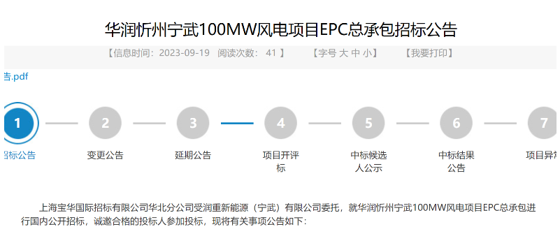 招標(biāo)范圍:本招標(biāo)為華潤忻州寧武100MW風(fēng)電項目,投標(biāo)方案按總規(guī)劃容量100MW,不超過22臺風(fēng)電機(jī)組,配套建設(shè)一座220kV升壓站(按照《華潤電力控股有限公司陸上新能源項目無人值守升壓站(開關(guān)站)典型設(shè)計(2022年版)》附錄D進(jìn)行設(shè)計、施工、建設(shè))及單回送出線路。以220kV電壓等級接入寧武縣220kV鳳凰變電站備用間隔。 本工程招標(biāo)范圍包括項目建設(shè)(含送出線路)相關(guān)手續(xù)及證照辦理,征租地、拆遷及地方關(guān)系協(xié)調(diào),工程勘察設(shè)計、設(shè)備材料采購、施工、試驗檢測、試運(yùn)行、專項驗收及竣工驗收、移交生產(chǎn)及質(zhì)保期內(nèi)的全部工作(質(zhì)保期內(nèi)所有備品備件、專用工具采購供應(yīng)以及相關(guān)的技術(shù)資料整理提供服務(wù))等。
