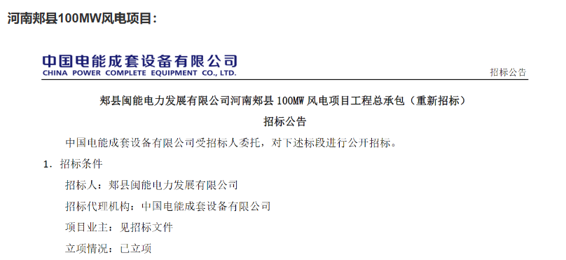 河南郟縣100MW風(fēng)電項(xiàng)目: