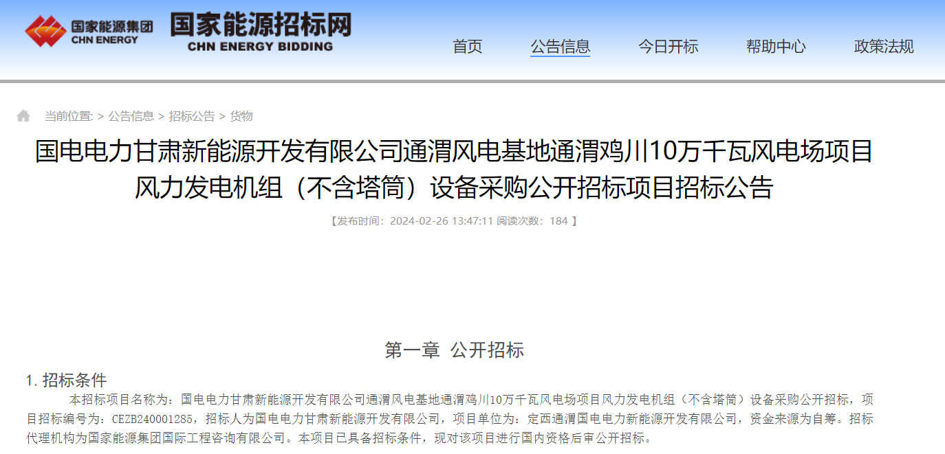 招標(biāo)范圍:包括但不限于以下內(nèi)容:通渭風(fēng)電基地通渭雞川10萬千瓦風(fēng)電場項(xiàng)目所需的單機(jī)容量5.5MW-6.0MW,葉輪直徑≥200m,風(fēng)電場總裝機(jī)數(shù)量不超過18臺(須采用同一機(jī)型),總?cè)萘繛?00MW(容量不允許偏差,超出容量可限功率運(yùn)行)的全新制造、技術(shù)先進(jìn)、性能穩(wěn)定、安全可靠、包裝完整的成套并網(wǎng)型風(fēng)力發(fā)電機(jī)組,包含高強(qiáng)螺栓和法蘭及風(fēng)電機(jī)組控制、一次調(diào)頻、能量管理平臺、視頻監(jiān)控監(jiān)視系統(tǒng)等的設(shè)計(jì)標(biāo)準(zhǔn)、技術(shù)規(guī)格、工作范圍、交貨進(jìn)度以及其他方面的要求。