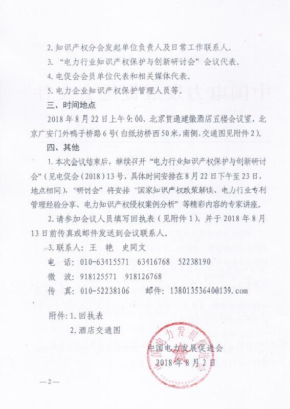 關(guān)于召開中國電力發(fā)展促進(jìn)會(huì)知識產(chǎn)權(quán)分會(huì)成立大會(huì)的通知