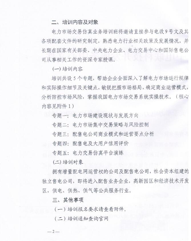 關(guān)于舉辦電力市場交易仿真業(yè)務(wù)培訓(xùn)班的通知