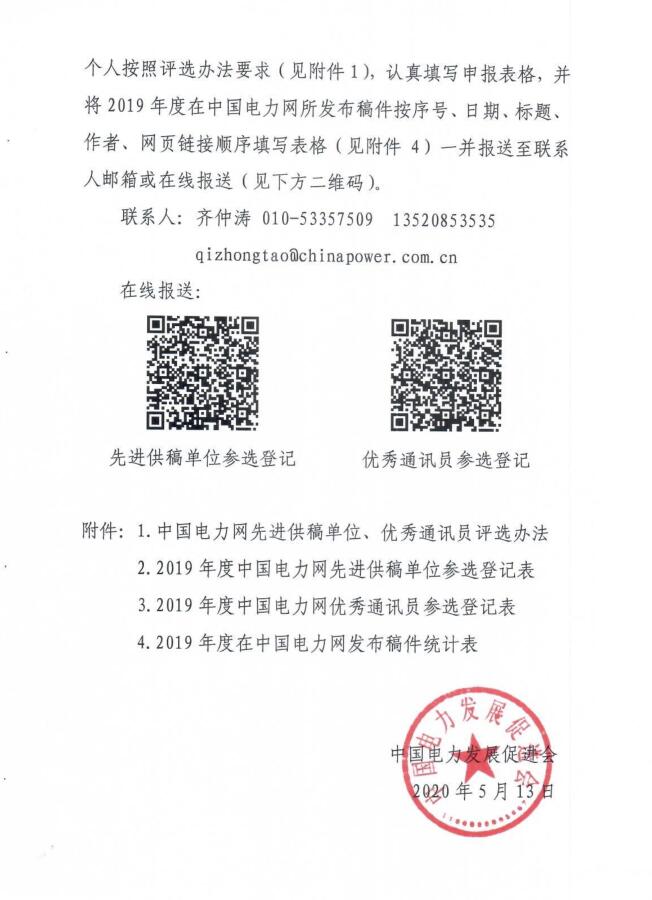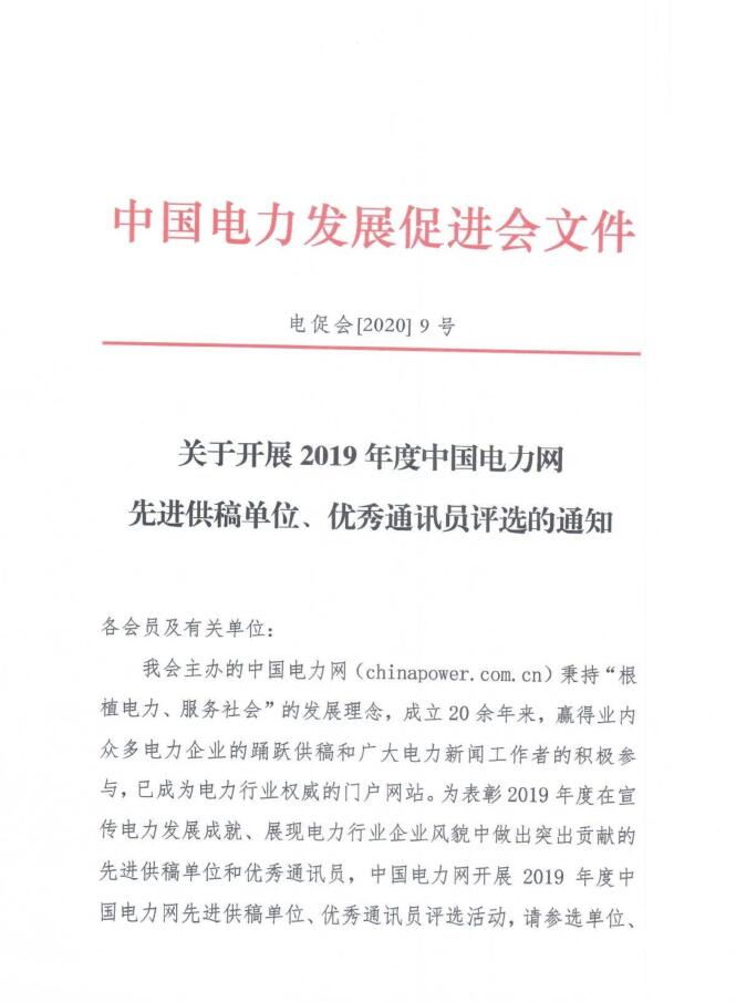 關于開展2019年度中國電力網(wǎng)先進供稿單位、優(yōu)秀通訊員的通知