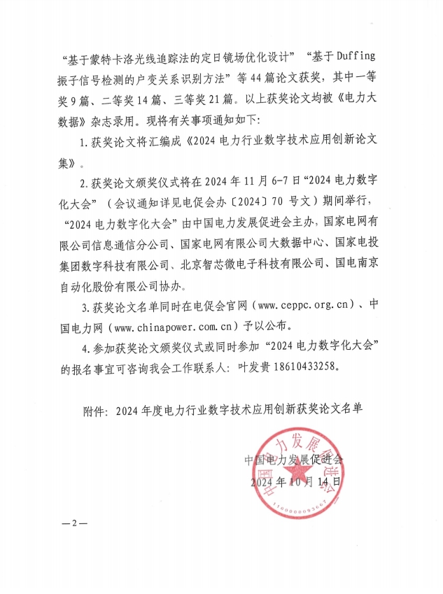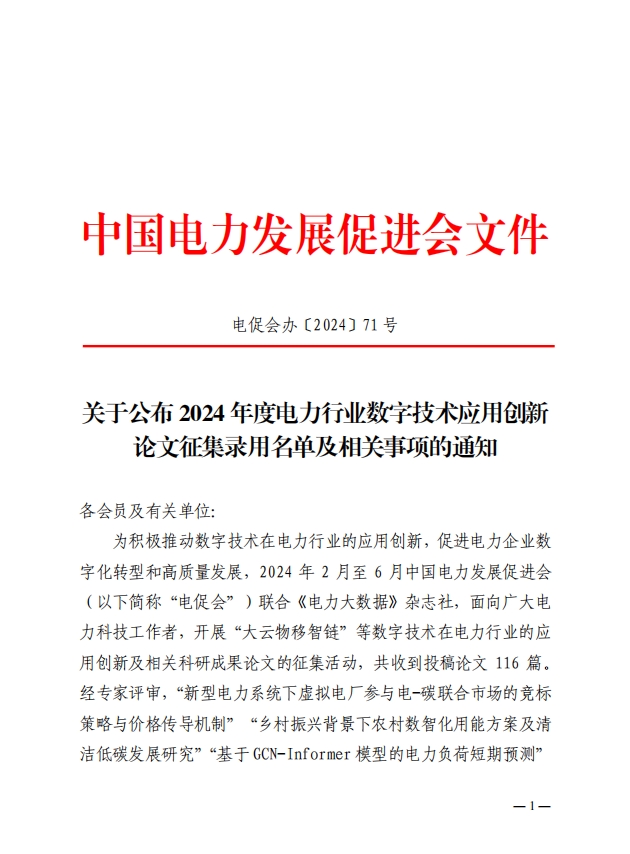 關(guān)于公布2024年度電力行業(yè)數(shù)字技術(shù)應(yīng)用創(chuàng)新論文征集錄用名單及相關(guān)事項(xiàng)的通知
