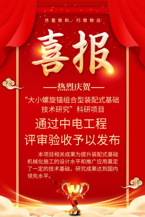 中國電力網(wǎng)訊 由中國能源建設(shè)集團(tuán)遼寧電力勘測設(shè)計院有限公司自主研發(fā)的“大小螺旋錨組合型裝配式基礎(chǔ)技術(shù)研究”科研項目通過了中電工程評審驗收并于近日發(fā)布。