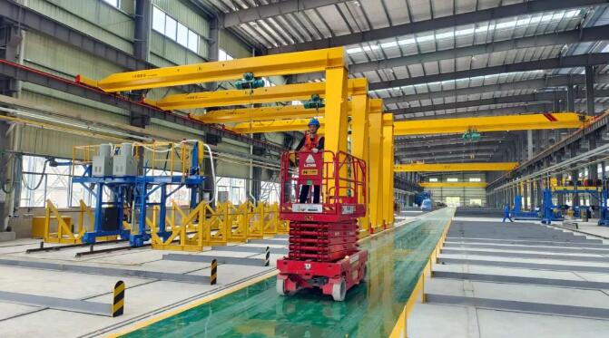 二期項目是建筑集團自行投資、建設、運營的專業(yè)化鋼結構加工制造項目,占地61.3畝,總建筑面積約2萬平方米,新建鋼結構生產線2條、新能源結構生產線2條、噴涂車間1座,新增產能2.5萬噸。“二期項目于2023年9月動工,2023年12月29日主體鋼架開吊,2024年5月25日如期建成,歷時9個月,創(chuàng)造了項目建設的‘至精速度’。”淮南至精鋼結構分公司經理田偉告訴記者,為節(jié)約投資成本、提高建設效率,項目充分利用建筑集團擁有的投資、設計、建設、運營能力,強化協(xié)同作戰(zhàn),數智賦能,使建設的各個環(huán)節(jié)都能順暢銜接,確保項目快速推進。