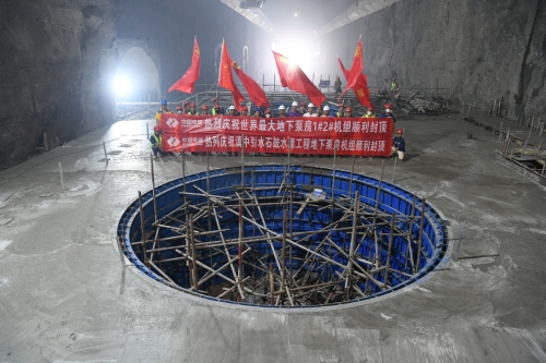 地下泵站布置有12臺(tái)離心式水泵機(jī)組,單機(jī)容量4萬千瓦,總裝機(jī)容量48萬千瓦,提水泵站單機(jī)離心泵容量世界最大、提水泵站總裝機(jī)容量世界最大。