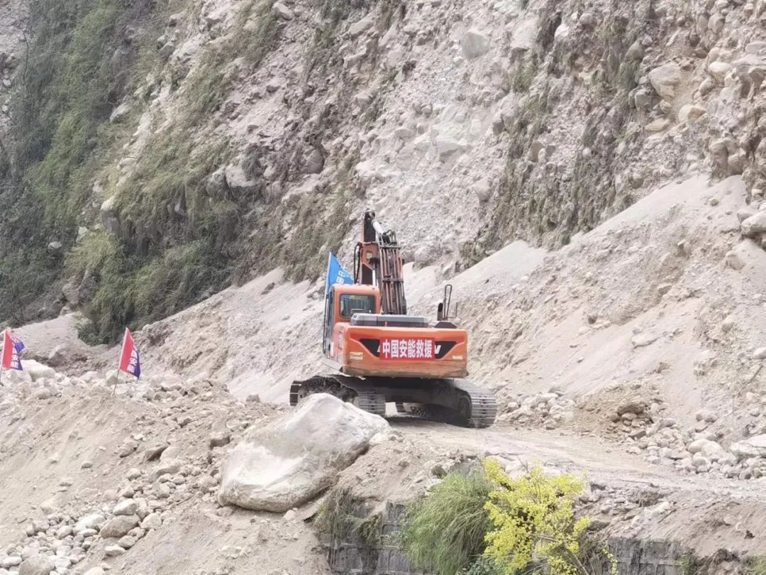 在瀘定縣至磨西鎮(zhèn)道路搶通段,中國安能搶通分隊(duì)30人,6臺(tái)套裝備爭分奪秒進(jìn)行排險(xiǎn)搶通作業(yè),工程測(cè)量人員運(yùn)用專業(yè)儀器實(shí)時(shí)對(duì)山體進(jìn)行監(jiān)測(cè)。由于塌方量較大,有很多大塊石的處置增加了施工難度,同時(shí)面臨余震導(dǎo)致再次山體滑坡和落石的危險(xiǎn),非常考驗(yàn)操作手的專業(yè)技術(shù)水平和心理素質(zhì)。排險(xiǎn)過程中,為確保安全高效,搶險(xiǎn)分隊(duì)把指揮員、操作手、測(cè)量員配置成多個(gè)小組輪番不停歇地進(jìn)行作業(yè)。9月6日13時(shí)40分,經(jīng)過23小時(shí)晝夜奮戰(zhàn),瀘定縣至磨西鎮(zhèn)道路完成搶通,實(shí)現(xiàn)雙向通車,救援人員、車輛、物資正源源不斷運(yùn)向?yàn)?zāi)區(qū)。