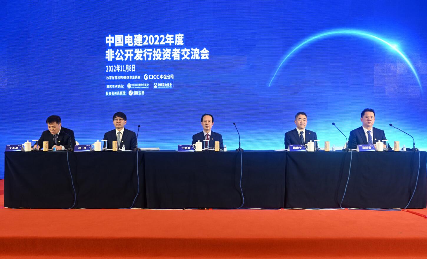 本網(wǎng)訊 11月8日,中國電建在京召開2022年度非公開發(fā)行投資者見面會。公司黨委書記、董事長丁焰章出席會議并作主題演講,對本次非公開發(fā)行方案進行了系統(tǒng)推介。公司總會計師楊良參與投資者交流。