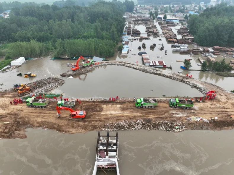 搶險(xiǎn)過(guò)程中,中國(guó)安能充分發(fā)揮集團(tuán)化作戰(zhàn)優(yōu)勢(shì)、專(zhuān)業(yè)技術(shù)優(yōu)勢(shì)、頑強(qiáng)作風(fēng)優(yōu)勢(shì),采取“道路搶通、主堤防護(hù)、圍堰進(jìn)占、潰口封堵”的戰(zhàn)法實(shí)施救援;針對(duì)搶修筑路保通難、保障多元融合難、堤防加固圍堰搶筑時(shí)間緊、車(chē)輛眾多指揮難等不利因素,積極與地方政府共同研究道路疏通、保通方案,確保封堵石料及時(shí)運(yùn)抵救援現(xiàn)場(chǎng);全體搶險(xiǎn)隊(duì)員發(fā)揚(yáng)特別能吃苦、特別能戰(zhàn)斗的頑強(qiáng)精神,頂烈日、斗酷暑,24小時(shí)輪班作業(yè),全力以赴加快進(jìn)度,提前完成第一道防線(xiàn)和第二道防線(xiàn)加固任務(wù)。