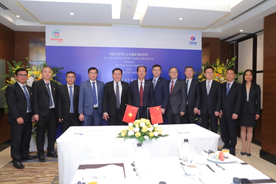 當(dāng)天下午,丁焰章與越南中南集團(tuán)總經(jīng)理阮心進(jìn)舉行會談,雙方就深化能源電力領(lǐng)域合作進(jìn)行深入交流,并共同見證916兆瓦風(fēng)電項目群工程總承包合同簽署。