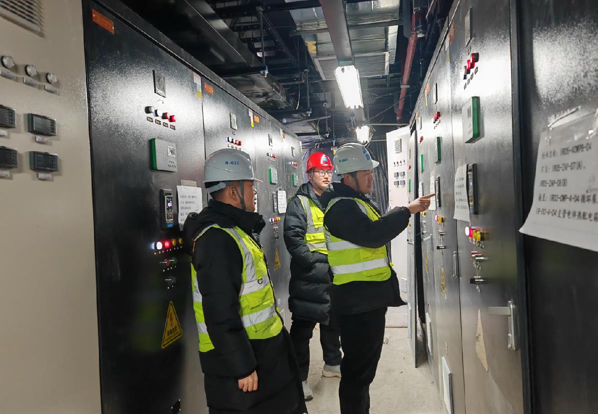“必須保證所有變電所分閘,防止重新送電時(shí)電流直接沖擊設(shè)備”“屋面泵房再去兩個(gè)人,重新起泵并保證壓力正常”“拿好對講機(jī),一間屋一間屋地送電”……現(xiàn)場總指揮、項(xiàng)目生產(chǎn)經(jīng)理閆鵬的聲音堅(jiān)定有力,全體值班人員嚴(yán)陣以待,緊張有序地執(zhí)行著操作指令。送電后,屋面泵房傳來水泵“轟隆隆”的機(jī)器運(yùn)轉(zhuǎn)聲。調(diào)試成功有效驗(yàn)證了柴發(fā)機(jī)組自身穩(wěn)定性和機(jī)組系統(tǒng)負(fù)荷控制能力,值班人員激動(dòng)地歡呼。