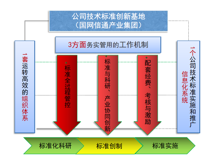 健全“1+3+1”體系機制該創(chuàng)新基地基于2019籌建工作基礎(chǔ),進一步健全了“1+3+1”組織體系和工作機制(即:以搭建一套運轉(zhuǎn)高效的組織體系為核心,以構(gòu)設(shè)“標準全過程管控,標準與科研、產(chǎn)業(yè)協(xié)同創(chuàng)新,配套經(jīng)費、考核與激勵”三方面務(wù)實管用的工作機制為抓手,以建設(shè)完善一個公司技術(shù)標準實施和推廣信息化系統(tǒng)為依托,統(tǒng)籌推進創(chuàng)新基地各項任務(wù))。完善“標準全過程管控,標準與科研、產(chǎn)業(yè)協(xié)同創(chuàng)新,配套經(jīng)費、考核與激勵”三方面工作機制。搭建了國家電網(wǎng)公司技術(shù)標準體系本地數(shù)據(jù)庫和技術(shù)標準實施評價信息化平臺,完成公司制度標準智能管理平臺建設(shè),構(gòu)建了首個電力行業(yè)標準與制度知識圖譜庫,初步形成“電網(wǎng)全業(yè)務(wù)神經(jīng)網(wǎng)絡(luò)”
