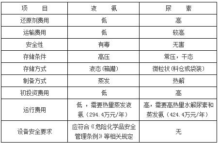 兩種還原劑在安全性和經(jīng)濟(jì)性上各有優(yōu)勢(shì),采用尿素作為還原劑是比較安全的,但初期投資造價(jià)高,運(yùn)行費(fèi)用也高;采用液氨作為還原劑,相對(duì)初期投資造價(jià)低,運(yùn)行費(fèi)用低,但液氨作為重大危險(xiǎn)源,在運(yùn)輸和儲(chǔ)備時(shí)存在一定的安全隱患,在運(yùn)輸成本上以及在生產(chǎn)安全管理上對(duì)電廠的運(yùn)行水平要求較高,存在一定的危險(xiǎn)性。因此從經(jīng)濟(jì)或運(yùn)行維護(hù)成本考慮,還原劑可以選擇液氨,但從安全角度考慮,則應(yīng)選擇尿素,中能自備電廠綜合考慮各種因素最終選擇尿素是較好的選擇。