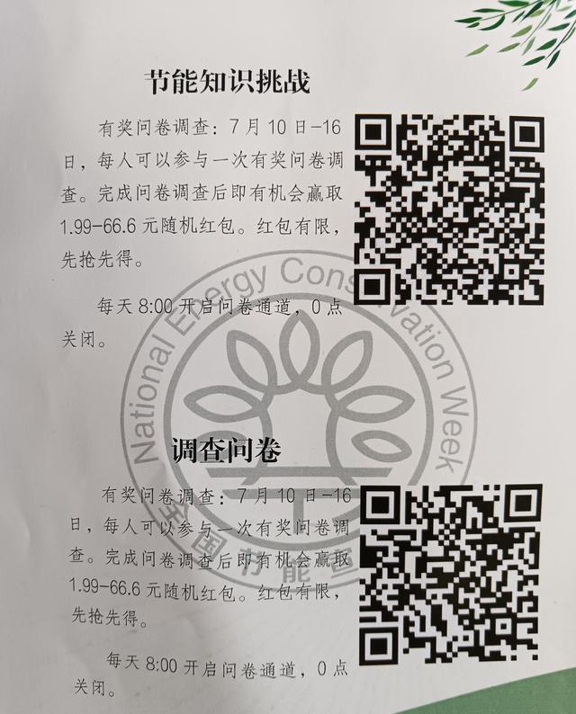 此外,記者還了解到,主辦方搭建了線上有獎(jiǎng)節(jié)能知識挑戰(zhàn)賽和調(diào)查問卷平臺,從7月10日到7月16日,平臺每天8時(shí)開啟問卷通道,0時(shí)關(guān)閉。完成挑戰(zhàn)則有機(jī)會獲得最高66.6元的現(xiàn)金紅包。紅包有限,先搶先得。