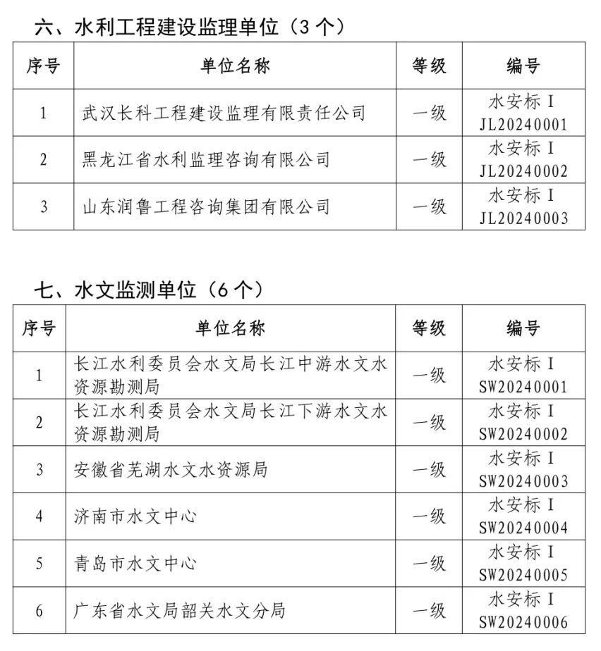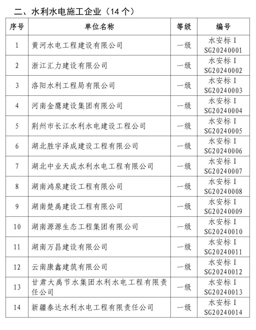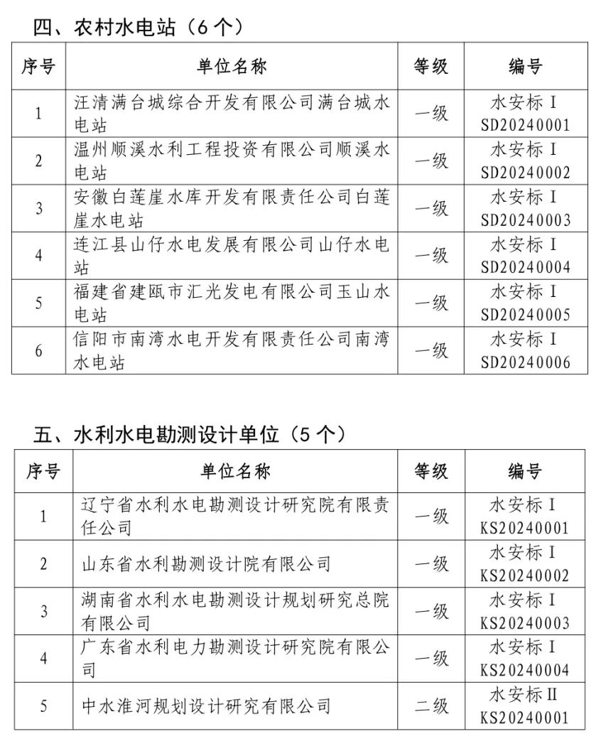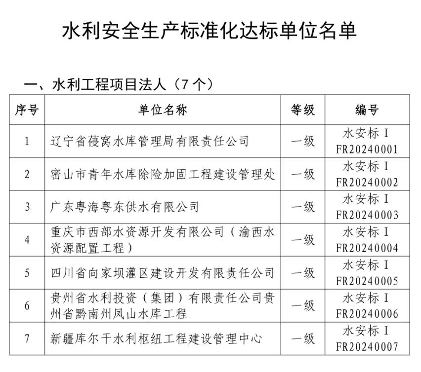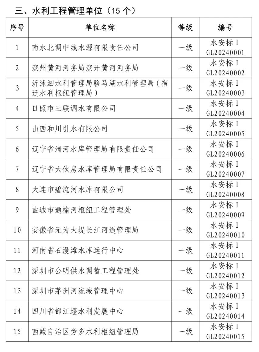 中新網(wǎng)1月22日電 據(jù)中國水利官方微信消息,根據(jù)《水利部關(guān)于印發(fā)〈水利安全生產(chǎn)標(biāo)準(zhǔn)化評(píng)審管理暫行辦法〉的通知》《水利部關(guān)于印發(fā)農(nóng)村水電站安全生產(chǎn)標(biāo)準(zhǔn)化達(dá)標(biāo)評(píng)級(jí)實(shí)施辦法(暫行)的通知》《水利部辦公廳關(guān)于印發(fā)〈水利安全生產(chǎn)標(biāo)準(zhǔn)化評(píng)審管理暫行辦法實(shí)施細(xì)則〉的通知》《水利部關(guān)于水利部安全生產(chǎn)標(biāo)準(zhǔn)化評(píng)審有關(guān)事項(xiàng)的通知》和《水利部辦公廳關(guān)于水利水電勘測設(shè)計(jì)等四類單位安全生產(chǎn)標(biāo)準(zhǔn)化有關(guān)工作的通知》,經(jīng)評(píng)審,遼寧省葠窩水庫管理局有限責(zé)任公司等57個(gè)單位為安全生產(chǎn)標(biāo)準(zhǔn)化一級(jí)單位、中水淮河規(guī)劃設(shè)計(jì)研究有限公司等2個(gè)單位為安全生產(chǎn)標(biāo)準(zhǔn)化二級(jí)單位,名單如下。