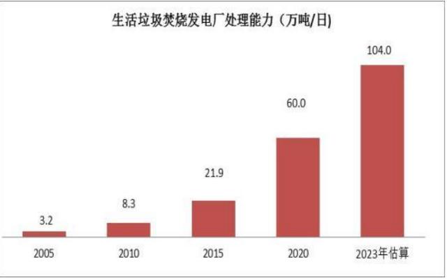 2021年,國家發(fā)展改革委、住房城鄉(xiāng)建設(shè)部發(fā)布的《“十四五”城鎮(zhèn)生活垃圾分類和處理設(shè)施發(fā)展規(guī)劃》提出,到2025年底,全國城鎮(zhèn)生活垃圾焚燒處理能力達(dá)到80萬噸/日, 焚燒處理能力占城鎮(zhèn)生活垃圾處理能力的65%左右。