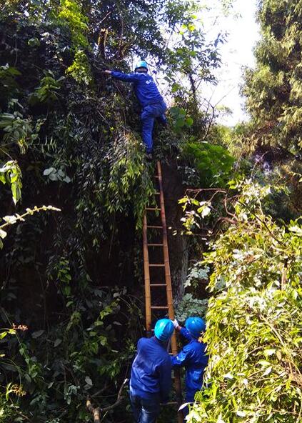 按照公司統(tǒng)一安排,松林供電所積極與高坪區(qū)老君、青蓮街道辦黨委、政府溝通協(xié)調(diào),得到了他們的大力支持和配合。從5月1日開始,供電所每天出動(dòng)16名員工,全副武裝帶上專業(yè)排障工具,頭頂烈日,翻山越嶺、披荊斬棘地全力清排樹障。竹梯、鐮刀、彎刀、油鋸、砍刀......為了清除樹障,他們用上了各種工具。員工們臉上、手臂上、腿上,到處可見劃傷的痕跡,工作服濕了又干、干了又濕。