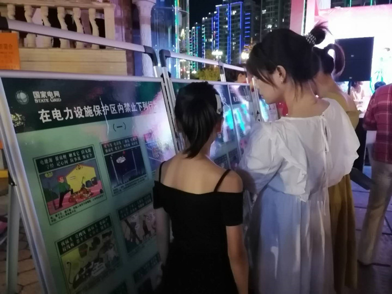 為進(jìn)一步營(yíng)造社會(huì)公眾共同關(guān)注安全用電、依法用電的氛圍,該公司結(jié)合國(guó)安夜市當(dāng)晚文藝匯演人員多聚集的優(yōu)勢(shì), 適時(shí)舉辦安全生產(chǎn)月“安全宣傳咨詢?nèi)?rdquo;活動(dòng),在夜市舞臺(tái)區(qū)“擺攤設(shè)點(diǎn)” ,為群眾帶來(lái)“面對(duì)面、零距離”的安全用電宣傳,全面掀起“安全生產(chǎn)月”安全用電宣傳熱潮?;顒?dòng)現(xiàn)場(chǎng),該公司開(kāi)設(shè)了家庭用電咨詢、安全用電咨詢等多個(gè)服務(wù)性咨詢臺(tái),對(duì)群眾用電問(wèn)題一一詳細(xì)做答;工作人員熱情地向來(lái)往行人發(fā)放安全用電宣傳畫冊(cè)、電力設(shè)施保護(hù)案例啟示等宣傳資料,主動(dòng)向群眾講解安全用電、觸電急救等知識(shí);陳列了電力設(shè)施保護(hù)宣傳等展板,并結(jié)合展板上的漫畫圖片向群眾宣傳電力設(shè)施保護(hù)知識(shí),倡導(dǎo)大家積極參與電力設(shè)施保護(hù)工作,共同維護(hù)電網(wǎng)安全;同時(shí)結(jié)合迎峰度夏工作,宣傳避峰用電、節(jié)約用電,引導(dǎo)大家樹(shù)立良好的用電習(xí)慣。