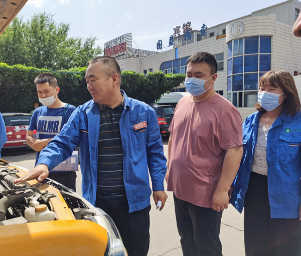 檢查現(xiàn)場,忠聯(lián)汽修廠郝總邊檢查邊為分局駕駛員進(jìn)行車輛日常維護(hù)及保養(yǎng)的講解。郝總講到駕駛員必須堅持進(jìn)行日常維護(hù),車輛日常維護(hù)包括堅持“三檢”,保持“四清”,防止“四漏”,每次出車前必須做到對汽車外觀進(jìn)行檢查、保持車容整潔;對汽車燃油、輪胎氣壓等進(jìn)行檢視補給;對汽車制動、轉(zhuǎn)向、燈光等安全部位和位置以及發(fā)動機運轉(zhuǎn)狀態(tài)進(jìn)行檢視。駕駛員在郝總的講解下模擬了車輛日常維護(hù)。