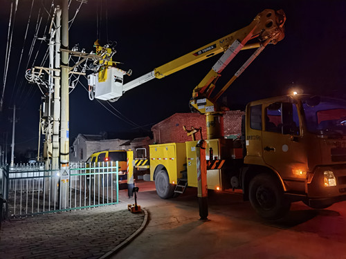 接到通知的應急搶修小組五人以最快的速度到達單位,此時此刻幾人臉上睡意全無,已然投入到搶修狀態(tài)當中。在了解完搶修任務后幾人馬上行動起來進行準備工作。二十分鐘后所有人員出發(fā),在車上,工作負責人張于斯強調道:“現(xiàn)在是凌晨,外面氣溫達到零下二十一度,如果你們要是在上面進行更換熔斷器的時候有任何身體上的不適都要立即停止工作,下來暖和一會兒再干,干的慢點不怕,要保證身體處于一個良好的狀態(tài),安全才是最基本的工作前提條件。”到達現(xiàn)場后,該處人員與礦區(qū)分公司負責人進行工作任務對接,重合閘退出并許可工作后,立即開始搶修。天寒地凍,讓搶修人員隔著三層防護手套依舊無法阻擋冷空氣將雙手凍僵,但在絕緣斗臂車上操作的人員手上的速度并沒有因此而放慢,經(jīng)過三十分鐘的努力將損壞的熔斷器更換完成。為了避免二次事故,該處的搶修人員需要等送電完成才能離開,完成搶修后礦區(qū)供電分公司的同事立刻安排送電,低壓開關合上所有在場的工作人員的心同街道上的路燈一起明亮了起來,他們在黑夜里堅守在崗位上準備迎接新一年的到來。