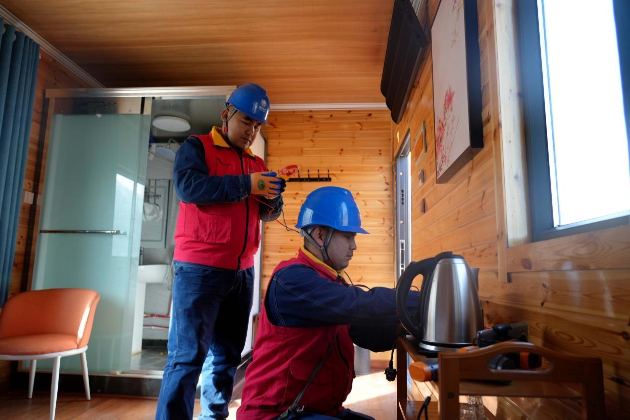 供電公司工作人員在天山托木爾景區(qū)·塔村民宿內(nèi)開展電力安全檢查工作 (趙新昌 攝)