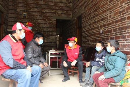 今年受新冠病毒疫情的影響,學(xué)校還未正常開學(xué),孩子們都在家中自行學(xué)習(xí),隊(duì)員采取逐戶上門探望的方式開展服務(wù)活動(dòng)。在李志成、李志祥同學(xué)家中,兩兄弟正一起埋頭溫習(xí)功課,看到‘紅馬甲’叔叔們?cè)谶@個(gè)時(shí)期里來(lái)到家里,兩兄弟高興得跳了起來(lái),大聲的呼喊在對(duì)面山上挖筍的爸爸趕快回家。兄弟倆的媽媽離家出走十多年未回,爸爸又患上了間歇性精神病,三父子相依為命,生活來(lái)源主要依靠農(nóng)村低保補(bǔ)助和叔叔的資助,家境貧困令人心酸??吹絻尚值芘d高采烈地拿著叔叔們給的‘紅包’,李爸爸眼中充滿了晶瑩和感動(dòng),緊緊地握著隊(duì)員們的手無(wú)法言語(yǔ)。李依婷同學(xué)是六年級(jí)班上唯的女生,文靜秀氣不愛(ài)言語(yǔ),由于父母離異后紛紛外出,小依婷跟著年邁的奶奶共同生活,學(xué)習(xí)非??炭?,成績(jī)?cè)诎嗌吓琶傲校?duì)員們?yōu)樗蜕狭伺D毯臀繂?wèn)金,和她一起翻閱了學(xué)習(xí)筆記,親切鼓勵(lì)她要努力學(xué)習(xí),好好報(bào)答奶奶的養(yǎng)育之恩···