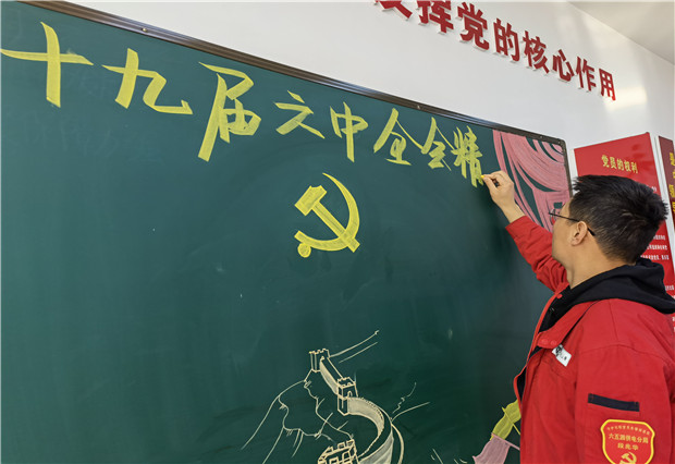 “線下”單位的青年黨員書寫黑板報(bào),為了讓單位全體職工更全面、更及時(shí)地了解會(huì)議精神,黨員將十九屆六中全會(huì)的會(huì)議重點(diǎn)內(nèi)容經(jīng)過(guò)精心設(shè)計(jì)、編排,搬到了單位的黑板上。正在黨員活動(dòng)室閱讀黑板報(bào)的積極分子說(shuō):“這個(gè)板報(bào)對(duì)全會(huì)的內(nèi)容歸納清晰、通俗易懂,這樣的學(xué)習(xí)形式讓我好像一下回歸學(xué)生時(shí)代,很受大家的歡迎。”除此之外,六五四供電公司黨支部還組織黨員結(jié)合工作崗位深入交流研討、撰寫心得體會(huì),在學(xué)習(xí)中談?wù)J識(shí)體會(huì)、話發(fā)展變化,深化思想啟迪、促進(jìn)共同提高。