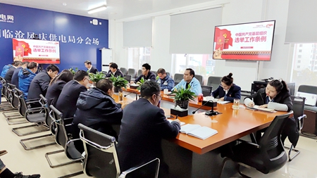 中國電力網(wǎng)訊 2022年2月23日,臨滄鳳慶供電局以會議代培訓(xùn)的形式組織局機關(guān)黨支部書記、黨務(wù)工作者、基層黨支部書記、全體共產(chǎn)黨員召開黨建工作管理制度學(xué)習(xí)會議,會議學(xué)習(xí)了《中國共產(chǎn)黨基層組織選舉工作條例》《云南電網(wǎng)有限責(zé)任公司組織生活會業(yè)務(wù)指導(dǎo)書》《云南電網(wǎng)有限責(zé)任公司黨支部業(yè)務(wù)手冊(2021版)》《云南電網(wǎng)有限責(zé)任公司黨內(nèi)評選表彰工作業(yè)務(wù)指導(dǎo)書》等內(nèi)容。