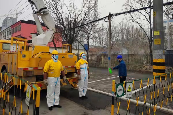 為保障禹城市民疫情下安全,禹城市已實(shí)行居家封閉。禹城公司身處一線的帶電作業(yè)班青年員工立足本職崗位,作業(yè)現(xiàn)場,該公司帶電作業(yè)人員做好防疫現(xiàn)場消毒,做好各項安全措施,全力保證疫情期間電網(wǎng)安全運(yùn)行,為疫情下轄區(qū)群眾正常生活提供可靠的電力保障。