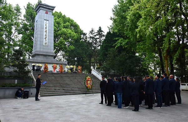 在莊嚴(yán)肅穆的革命烈士紀(jì)念碑前,公司黨員肅立向烈士默哀、奏國(guó)歌,向先烈們致以最崇高的敬意,隨后,大家步行環(huán)繞烈士墓,為英烈獻(xiàn)花,行三鞠躬禮,以表達(dá)對(duì)革命英烈的敬仰與追思之情。