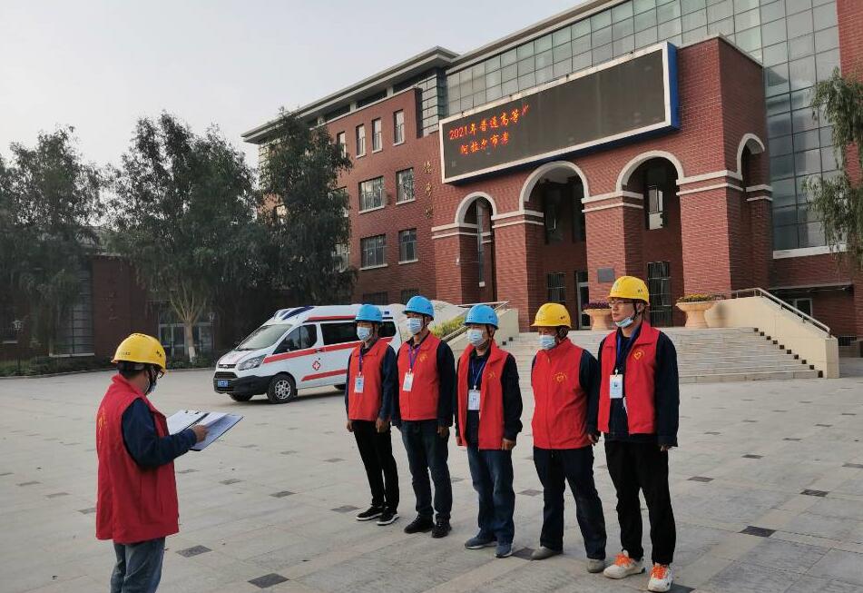 2021年全國普通高校統(tǒng)一招生考試阿拉爾市共設(shè)置塔里高級中學(xué)、第一師高級中學(xué)、塔里木職業(yè)技術(shù)學(xué)院3個校區(qū)2個考點84個考場,高考報名2041人??紤]到疫情防控仍處于關(guān)鍵時刻,夏季沙塵天氣提前到來,極端大風(fēng)天氣隨時都有可能發(fā)生的情況,保電工作增加了嚴(yán)峻考驗和工作難度。