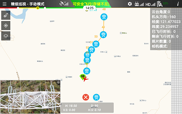 以往需要巡檢人員手動操作無人機(jī)進(jìn)行巡檢工作,現(xiàn)在通過無人機(jī)自主巡檢系統(tǒng),可以實現(xiàn)管轄線路內(nèi)任意段的無人機(jī)自主飛行巡檢,巡檢人員一次性發(fā)出指令,無人機(jī)按照指令自主出發(fā)、自主巡檢、自主返回降落。在自主飛行過程中,畫面圖像會實時的回傳到地面操作平臺。巡檢人員進(jìn)行軟件操作即可實現(xiàn)桿塔精細(xì)化巡視、樹障巡視、通道巡視、紅外測溫等其他巡視任務(wù)。以往需要人工視角或無人機(jī)視角來獲取線路通道情況,依靠的是人工主觀判斷,存在一定的誤判率。現(xiàn)在通過管控平臺進(jìn)行三維點云數(shù)據(jù)處理,可以構(gòu)成一個三維的模擬現(xiàn)場環(huán)境的電力線,精確的給出線樹距離、面積、體積等,并生成檢測報告,大大減少了不必要的工作。以往需要巡檢人員回到辦公地點進(jìn)行巡視結(jié)果匯報,現(xiàn)在在現(xiàn)場通過巡檢專業(yè)移動終端上報至平臺系統(tǒng)即可完成工作匯報,管控人員通過平臺報表和預(yù)警合理的安排工作人員,極大的提升了工作效率。