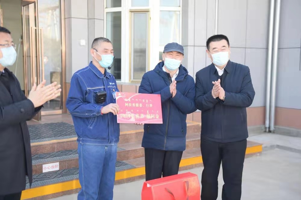 春節(jié)將至,歲寒情深,2021年02月08日,代盟長(zhǎng)親自帶隊(duì)來到了220kV賀蘭山變電站,為每一位一線員工送來了新年的慰問品及最暖心的新年問候。爆竹聲中一歲除,總把新桃換舊符,值此新春佳節(jié)來臨之際,各位領(lǐng)導(dǎo)的到來,讓我們每位運(yùn)行人員的心里都感受到了無比的溫暖。