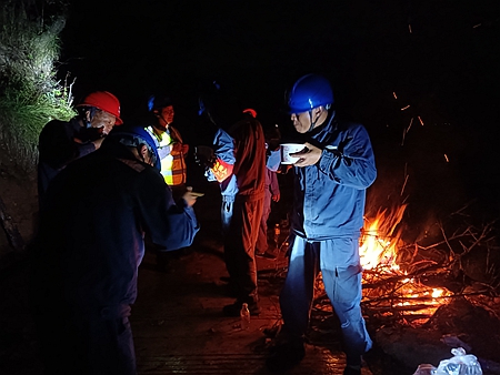 幾天前我到小灣供電所一個偏遠(yuǎn)的搶修現(xiàn)場,因?yàn)橄掠甑脑颍瑩屝薰ぷ餮舆t到下午16時(shí)多才開始,直到凌晨3點(diǎn)多結(jié)束。期間23時(shí)左右因大雨而工作暫停,大家才燒了壺水燙了個方便面墊了個底。