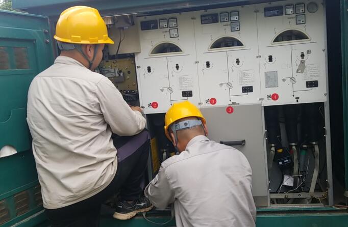 圖為工作人員在10千伏工業(yè)園II回02號(hào)環(huán)網(wǎng)柜內(nèi)安裝二遙設(shè)備