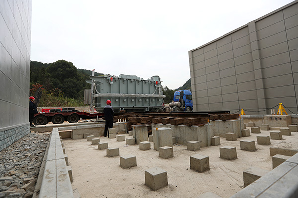 為保證變壓器順利運(yùn)輸、安全就位。國網(wǎng)寧??h供電公司前期做了大量的準(zhǔn)備工作,與主變廠家、運(yùn)輸公司、設(shè)計(jì)、施工單位人員多次溝通協(xié)調(diào),帶領(lǐng)專業(yè)技術(shù)人員多次深入現(xiàn)場(chǎng)踏勘進(jìn)站便道地形、路況,組織研討運(yùn)輸和安裝方案,并對(duì)主變安裝施工人員進(jìn)行了全面的安全、技術(shù)交底,對(duì)施工流程、人員分工、施工關(guān)鍵點(diǎn)控制等進(jìn)行具體安排。由于本次主變來自山東魯能泰山電力設(shè)備有限公司,距離浙江寧海長達(dá)1015公里,承載著七十二噸的龐然大物,全程運(yùn)輸六十五個(gè)小時(shí),在克服沿線空障多、橋梁多、路況復(fù)雜等困難下,終于抵達(dá)了目的地。