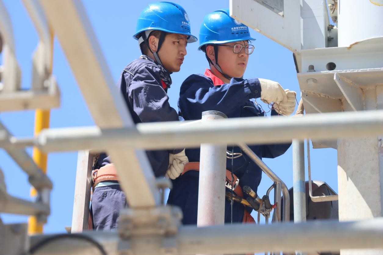 三盛公變電站是磴口縣最大的變電站,是磴口縣電力供應(yīng)的重要保障。高壓試驗(yàn)二班此次的檢修任務(wù)是252間隔的高壓試驗(yàn),需要到距地3m以上的電流互感器架構(gòu)旁進(jìn)行接線試驗(yàn)。按照工作安排,師傅帶領(lǐng)新員工登上了斗臂車(chē),開(kāi)始了“傳幫帶”教學(xué)。斗臂車(chē)的操作并不復(fù)雜,一共8個(gè)操控按鈕,一個(gè)油門(mén),一個(gè)緊急停車(chē)按鈕。師傅邊說(shuō)邊示范操作:“首先要看對(duì)方向,然后緩?fù)朴烷T(mén),斗臂啟動(dòng)時(shí)要注意與周?chē)O(shè)備的距離,一定不能著急。”然后便讓新員工上手實(shí)踐一下,他在旁邊監(jiān)護(hù)。新員工上手后對(duì)于油門(mén)推進(jìn)把控不好,他又耐心地教導(dǎo):“油門(mén)起步一定要慢,不然斗臂會(huì)抖得很厲害,等緩慢啟動(dòng)之后,斗臂就可以很穩(wěn)當(dāng)?shù)赝七M(jìn)了,別急慢慢來(lái)。”時(shí)近正午,雖然汗滴從安全帽沿不斷滑落,但是新員工耐心地聽(tīng)著師傅的教導(dǎo)并操作,技能漸漸嫻熟。