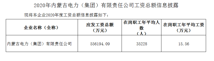 2020年內(nèi)蒙古電力(集團)有限責任公司工資總額信息披露