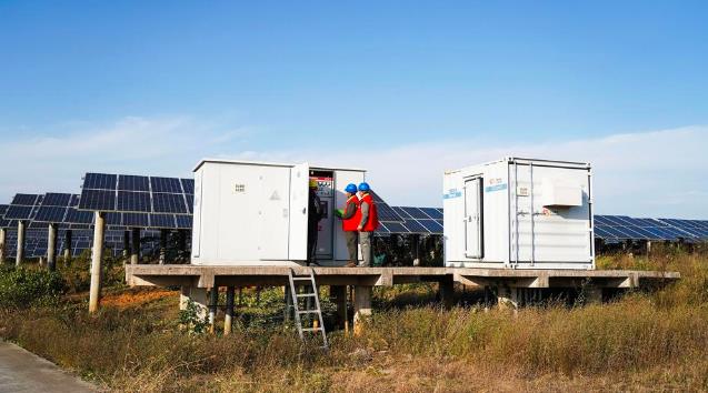 安吉縣供電公司員工維護(hù)草蕩湖光伏設(shè)備和儲(chǔ)能設(shè)施。 董振茂 攝