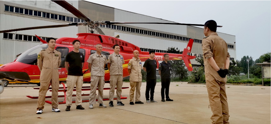 國網(wǎng)空間技術(shù)公司輕型直升機(jī)機(jī)組在河北保定定興臨時(shí)起降點(diǎn)做飛往涿州的準(zhǔn)備。(師維藝)