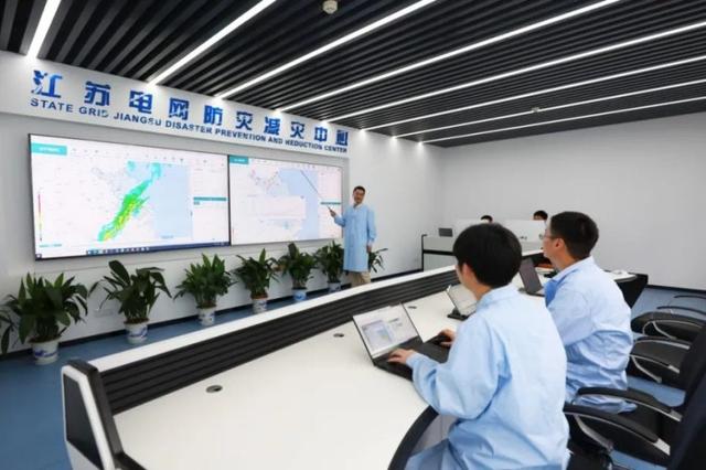 江蘇電網(wǎng)防災(zāi)減災(zāi)中心技術(shù)人員對氣象預(yù)警技術(shù)進(jìn)行研討。