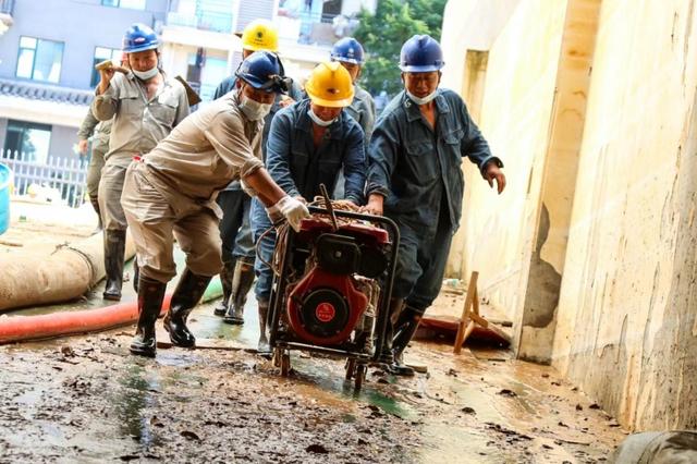 國網(wǎng)湖南婁底供電公司員工在平江縣桂花學(xué)校搶修中運送發(fā)電機(jī)。