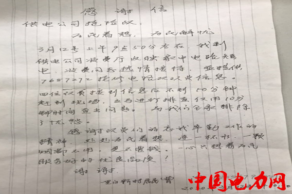 中國電力網(wǎng)訊 我看你們是真正的好人。”3月12日,國網(wǎng)蒙城縣供電公司開發(fā)區(qū)中心供電所城市營業(yè)大廳里,一位“不速之客”握著李雪梅主仼的手連聲道謝;來客是一里白新村居用電戶民曹澤,今天上午特地過來感謝開發(fā)區(qū)中心供電所城市營業(yè)大廳幫助他家檢修緊用10分鐘時間查出問題。這是國網(wǎng)蒙城縣供電公司營業(yè)廳全部恢復營業(yè)辦理第一件事。