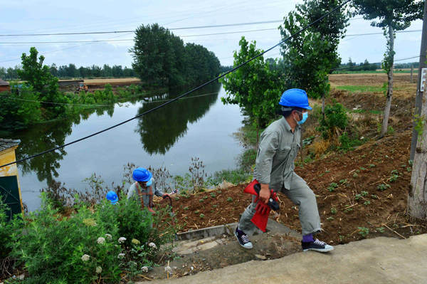 “陳書記,昨天下雨無法施工,我們現(xiàn)在在陳廟一級站,準(zhǔn)備開展專變表箱表計和互感器安裝工作,請許可斷開專變跌落保險。”6月10日上午,國網(wǎng)湖北老河口市供電公司薛集供電所營銷班長李永久和同事站在薛集鎮(zhèn)陳廟村一級提灌泵站旁,撥通了陳廟村書記陳豐功的電話。
