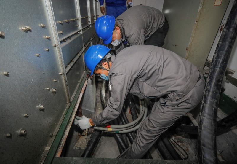 “門診明天6時(shí)開始工作,我們必須在凌晨4時(shí)前通電,保證門診部明天正常運(yùn)轉(zhuǎn)!” 工程負(fù)責(zé)人張軍現(xiàn)場號(hào)令。30日晚,20余名電力員工在李惠利醫(yī)院10千伏環(huán)網(wǎng)站周圍拉起安全施工防護(hù)欄和警界線,一場10千伏新電力用電設(shè)備投運(yùn)施工在星夜展開。老配電房電纜溝窄小,2名員工只能側(cè)著身把舊導(dǎo)線用力拉出來,再把新電纜放進(jìn)去。新配電箱安裝時(shí),供電員工只能跪著安裝碗口粗的銅電纜,施工難度非常大。而供電員工心理明白,這是一場與時(shí)間賽跑、為生命加速的工程。
