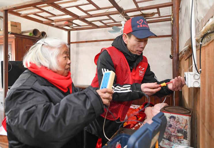1月8日,志愿者帶著禮物來到老人家中,他們給老人圍上溫暖的圍巾,穿上厚實的外套,并給她鋪上嶄新的被子,老人笑得合不攏嘴。同時,志愿者還對老人房中的室內(nèi)電氣線路進(jìn)行了檢查與維修,為其確保用電安全。志愿者胡群豐表示:“天氣寒冷,能夠給老人送上安全與溫暖,我們很自豪。”