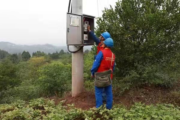 共產(chǎn)黨員服務(wù)隊(duì)隊(duì)員檢查用電線路設(shè)備