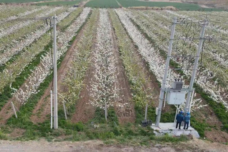 插上了“電翅膀”,大馬莊千畝梨園全部安裝了智能化澆灌、除草、噴灑等設(shè)備,進(jìn)一步提高了工作質(zhì)效。同時(shí),該公司工作人員根據(jù)梨園內(nèi)不同品種的梨子生長(zhǎng)習(xí)性不同,為它們建立“專項(xiàng)檔案”,定期特巡園區(qū)重要線路,從生產(chǎn)、采摘、加工、包裝進(jìn)行全方位管家式“一對(duì)一”服務(wù)。他們重點(diǎn)查看開(kāi)關(guān)、導(dǎo)線、插座等用電設(shè)備設(shè)施,對(duì)存在用電安全隱患的及時(shí)督促整改,對(duì)老化線路、開(kāi)關(guān)和破損導(dǎo)線進(jìn)行更換、維護(hù),并利用微信、短信等途徑引導(dǎo)農(nóng)戶安全用電。