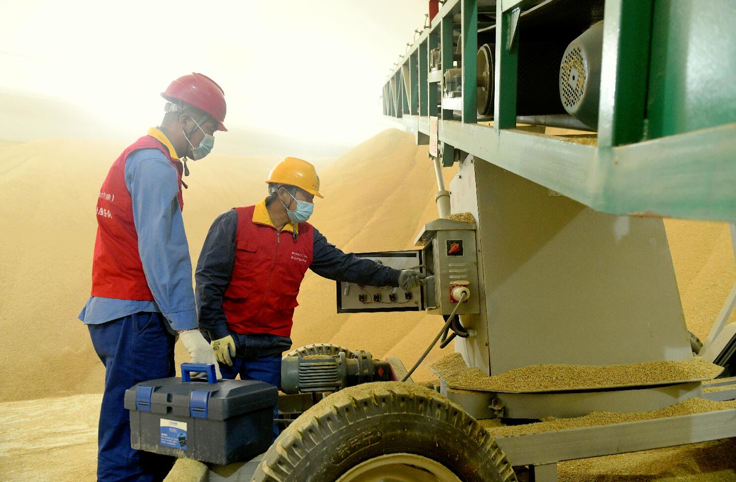 糧食烘干后,下一步就是售入糧倉(cāng)進(jìn)行儲(chǔ)藏,在余姚市新型機(jī)械化智能化糧庫(kù)——第三中心糧庫(kù),國(guó)家電網(wǎng)浙江電力(余姚)紅船共產(chǎn)黨員服務(wù)隊(duì)隊(duì)員劉益軍、李財(cái)寶正仔細(xì)檢查配電線路、變壓器等供電設(shè)備,同時(shí)對(duì)糧庫(kù)內(nèi)安全工器具是否完備、移動(dòng)式轉(zhuǎn)向型傳送機(jī)等大型設(shè)備供電線路是否存在隱患,插排轉(zhuǎn)換器等是否安全等情況進(jìn)行了嚴(yán)格檢查。“糧庫(kù)內(nèi)的電力設(shè)備和線路運(yùn)行良好,一來(lái)不要超載運(yùn)行,二來(lái)注意用電設(shè)備周邊清潔就可以啦。”服務(wù)隊(duì)員劉益軍叮囑道。